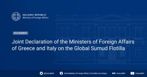 Greece joined Italy in appealing to the Global Sumud Flotilla (GSF) to accept the Latin Patriarchate of Jerusalem’s offer to safely deliver humanitarian aid to Gaza, avoiding a confrontation with Israeli forces. The Greek Foreign Ministry’s statement urged the flotilla, which includes activists like Greta Thunberg, to transfer its supplies to the Patriarchate for distribution, emphasizing the need for peaceful resolution. “Accept the Latin Patriarchate of Jerusalem’s offer to safely deliver aid intended in solidarity with the children, women, and men of Gaza,” the appeal read, as reported by Israeli Foreign Minister Gideon Sa’ar on X.