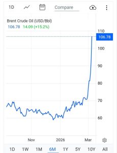 London / Tehran – March 2026 The global oil market has reacted with extreme volatility to the selection of Mojtaba Khamenei as Iran’s new Supreme Leader following the death of his father, Ayatollah Ali Khamenei. Brent crude prices rocketed approximately 53% in a single day — the largest one-day percentage increase in decades — reaching $107 per barrel after starting the trading session near $70.