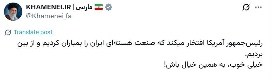 Iranian Supreme Leader Khamenei Mocks U.S. Claim of Destroying Iran’s Nuclear Program