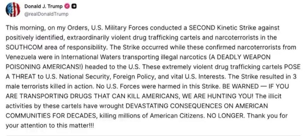 President Trump Announces U.S. Military Strike on Venezuelan Drug Boat