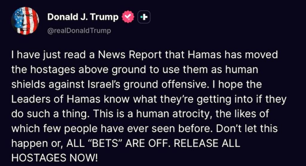Trump Warns Hamas Over Hostage Human Shields in Gaza