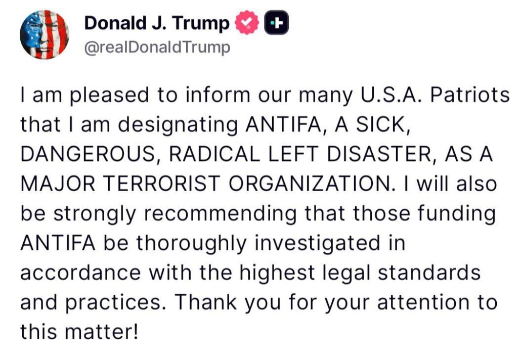 Trump Declares Antifa a Terrorist Organization After Charlie Kirk’s Assassination