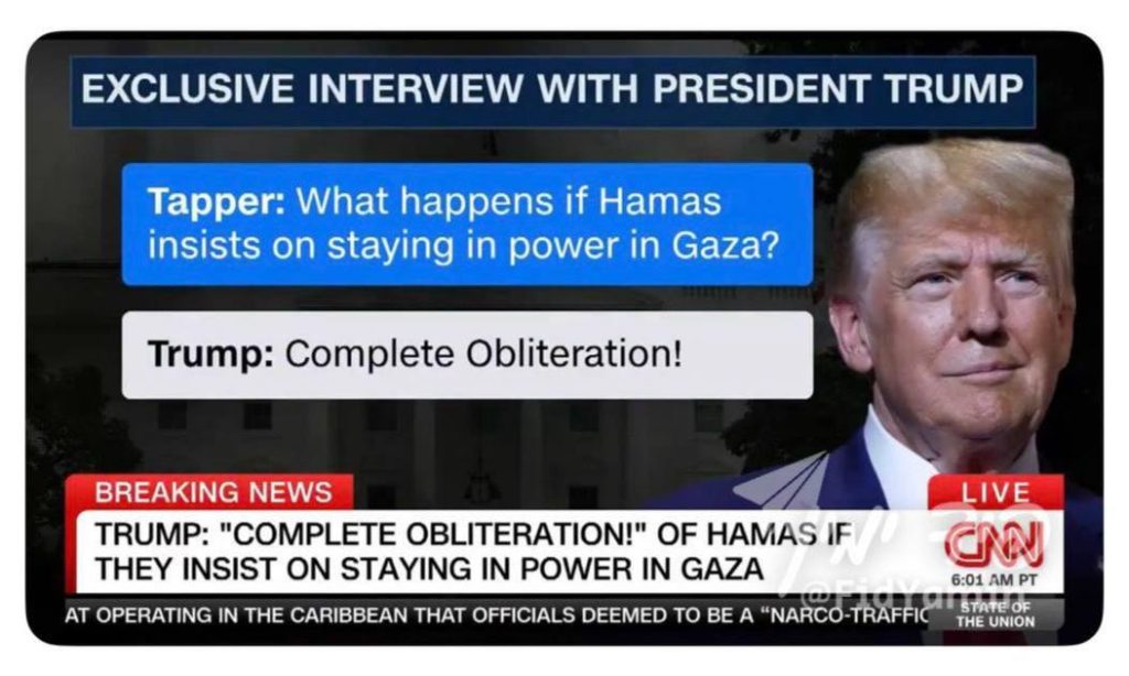 Breaking: Trump Warns of ‘Total Destruction’ if Hamas Remains in Power in Gaza