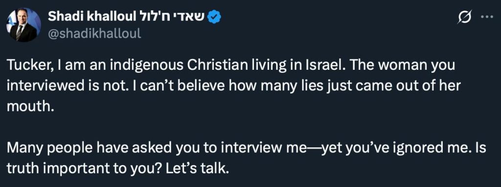 Tucker Carlson Does Another Hatchet Piece Against Israel Using Terrorist Apologist, Pseudo Christian Nun; Fails to Engage with Indigenous Israeli Christians